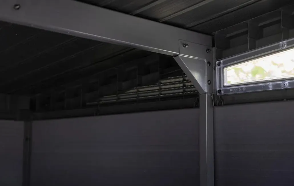 - Heavy-duty shed floor: The Signature’s heavy-duty floor provides protection from mud and dirt. The shed floor has 8 anchor spots for securing it to the foundation.