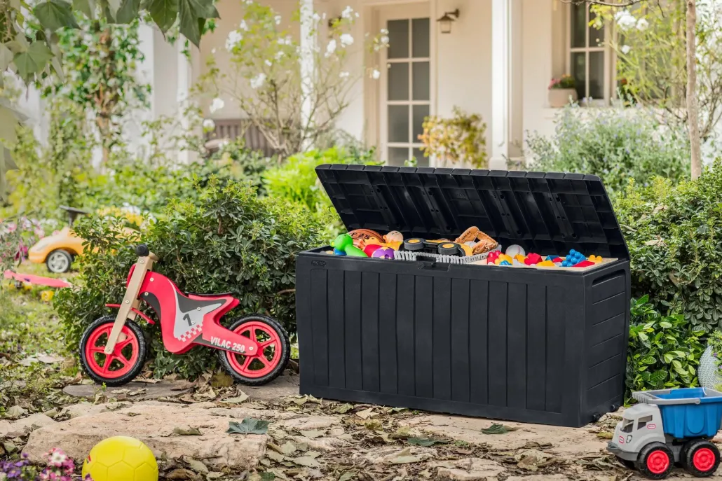 - Extra seating: This versatile deck box also works as a bench, adding more seating options to your patio.