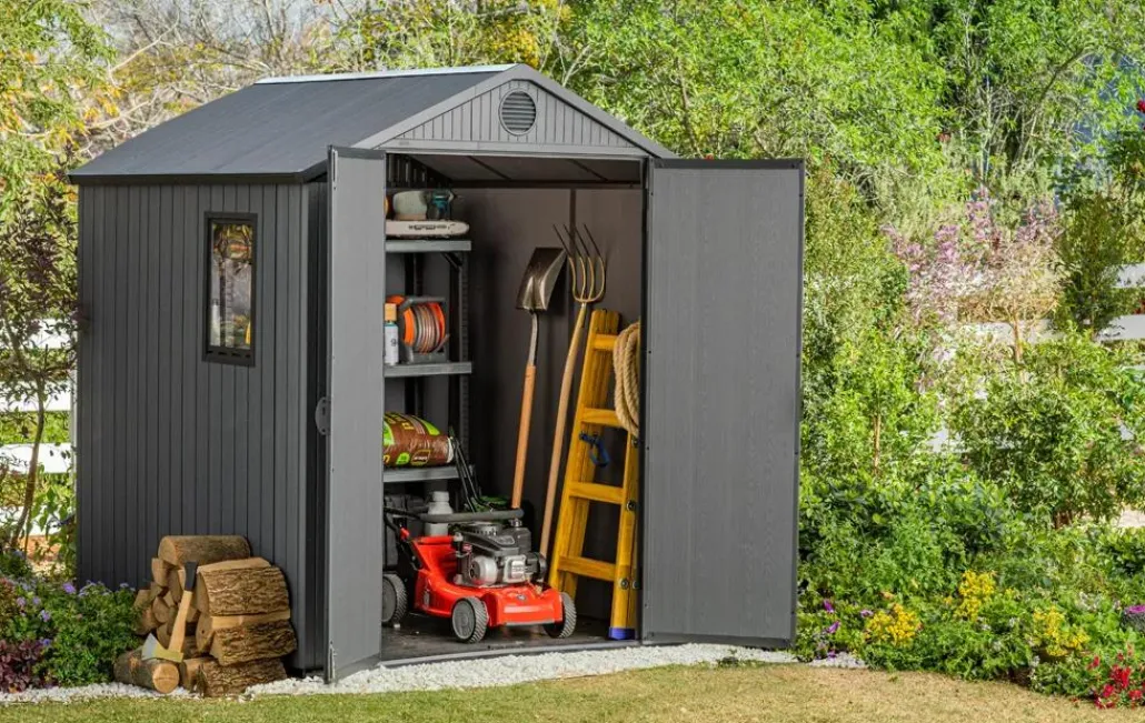 - Double-door shed design: With its wide double doors, the Darwin shed provides easy access for storing large items, including garden tools, patio cushions and lawn equipment.